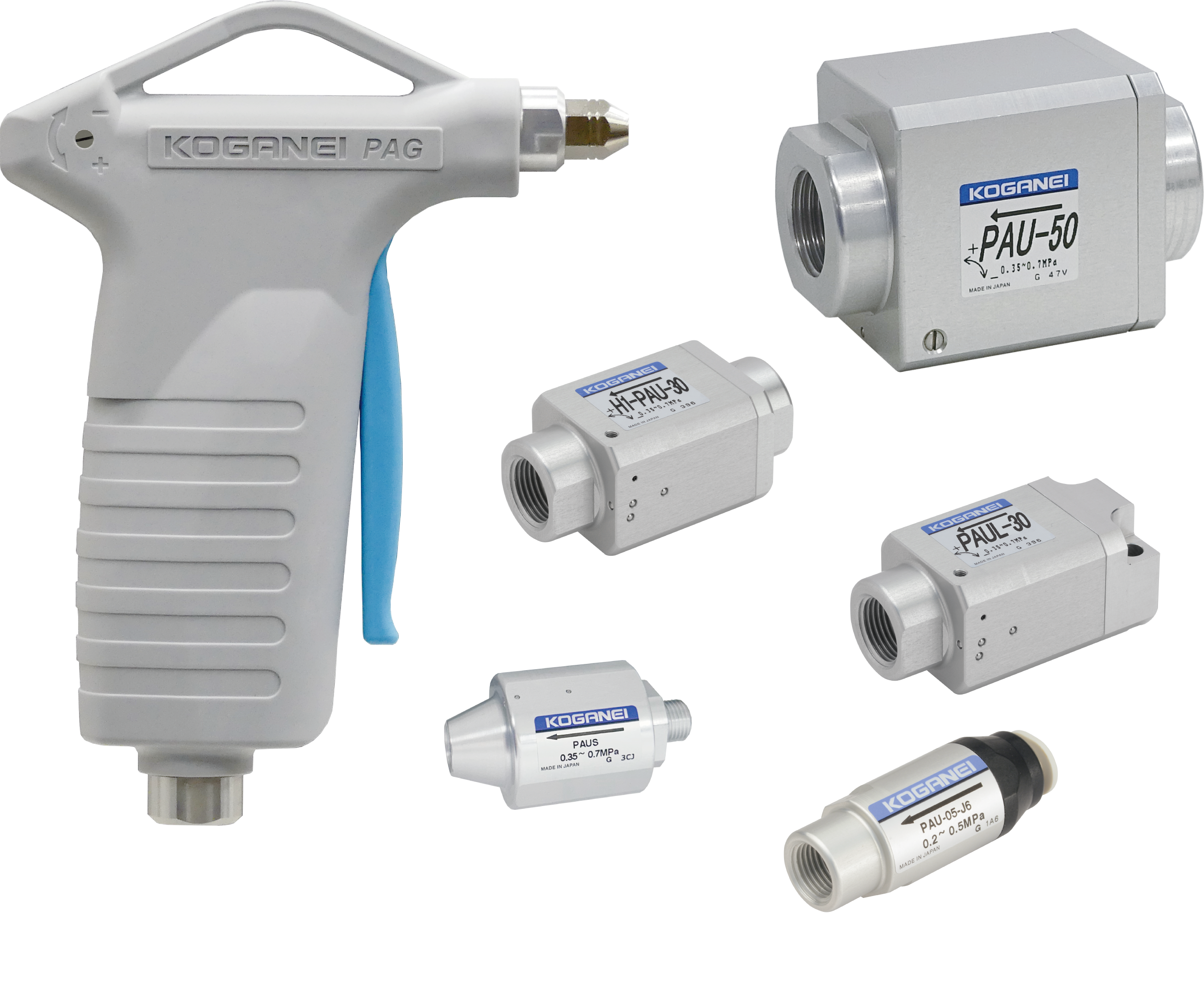 The Pulse Blow Unit is an energy-saving device that enhances blowing performance by intermittently ejecting compressed air, while reducing air consumption by approximately 50% compared to conventional systems.