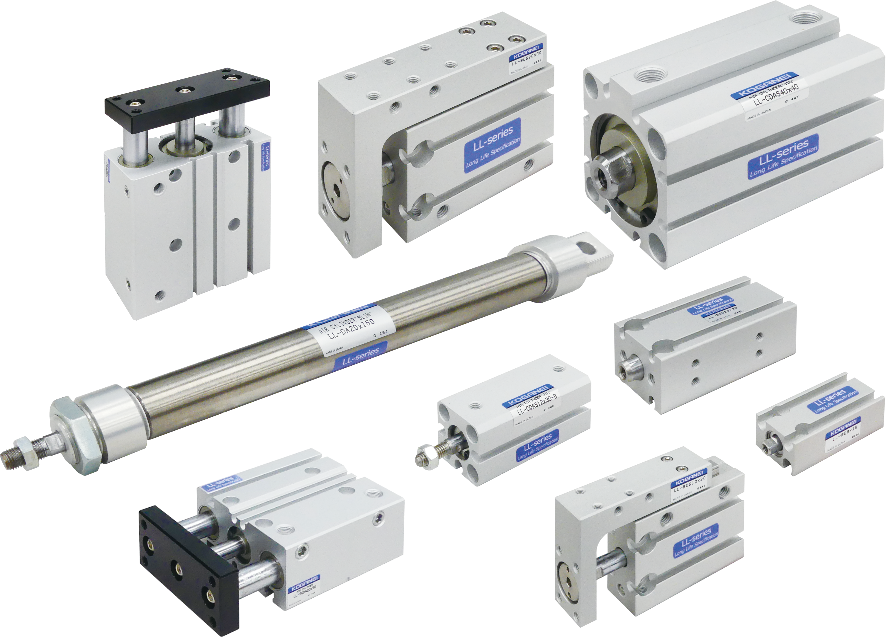 The Long-Life Cylinder is a high-reliability model designed to achieve more than five times the durability of conventional products. Its wear-reducing design maintains performance over extended periods of use, significantly lowering maintenance and replacement frequency. By supporting stable production line operation and reducing total cost of ownership, this cylinder contributes to improved productivity. A wide range of variations is available, including basic cylinders, guided types, slim types, and jig cylinders, allowing optimal selection based on application and installation requirements.
